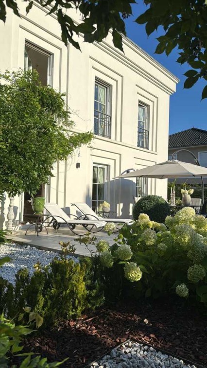 Das Grundstück selbst ist ein eigener Kosmos – liebevoll gestaltet, perfekt gepflegt und geprägt von außergewöhnlicher botanischer Vielfalt. Ein exquisiter Rosengarten sowie eine sorgfältig kuratierte Auswahl wertvoller Blumenarten verleihen dem Außenbereich eine besondere Atmosphäre. Farben, Düfte und saisonale Blütenbilder schaffen ein Ambiente wie in einem privaten Gartenpark. Mehrere Terrassenbereiche bieten ideale Rückzugsorte – ob für ein entspanntes Frühstück in der Morgensonne, ein Glas Wein am Abend oder stilvolle Empfänge im Grünen. Die große, repräsentative Blumenterrasse bildet dabei einen besonderen Blickfang und lässt Außen- und Innenleben zu einer Einheit verschmelzen.