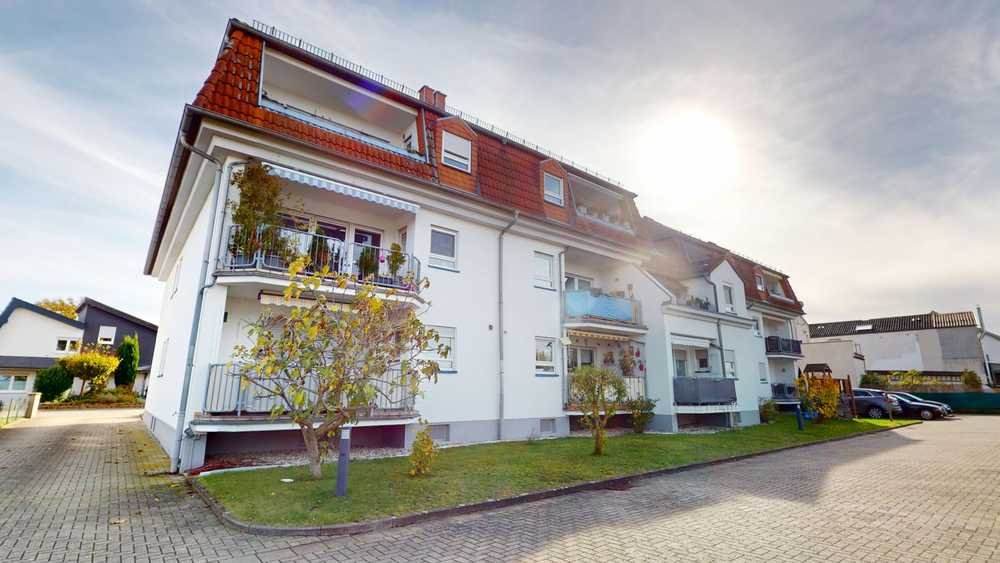 Die Wohnung befindet sich im Dachgeschoss (3. OG) eines gepflegten 6-Parteienhauses in Römerberg-Berghausen und erstreckt sich über zwei Ebenen mit ca. 93 m² Wohnfläche.