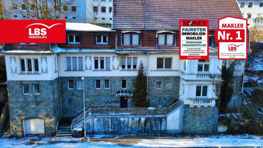 Willkommen in einem Stück Zeitgeschichte. Diese im Jahr 1922 massiv errichtete Unternehmervilla wurde einst von der Geschäftsleitung der gegenüberliegenden Traditionsfirma Mayweg in Auftrag gegeben. Sie ist ein stolzes Zeugnis der Industriekultur und verbindet herrschaftliche Architektur mit der funktionalen Eleganz der frühen 20er Jahre. Schon beim ersten Anblick beeindruckt die Immobilie durch ihre charakteristische Natursteinfassade im Erdgeschoss und die klassische Gliederung der Obergeschosse mit dekorativen Rauten-Elementen. Ein besonderes architektonisches Highlight ist der straßenseitige Erker mit Balustrade, der dem Gebäude eine majestätische Präsenz verleiht.