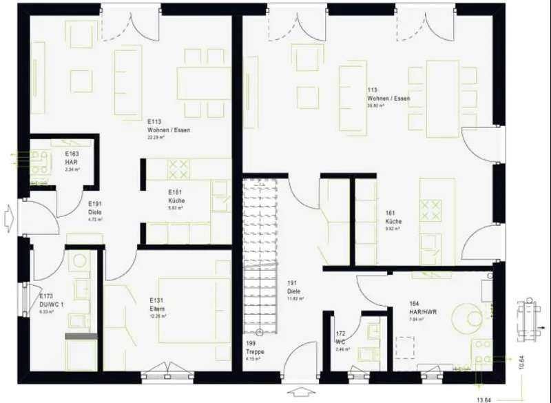 Das FamilyStyle 23.01 S bietet auf einer Nettogrundfläche von 232 m² viel Raum für unterschiedlichste Wohnideen - vom Mehrgenerationenwohnen bis zur vermieteten Einliegerwohnung als Finanzierungshilfe. Möglich macht dies die Aufteilung des Hauses in eine komplette, separate Wohnung im Erdgeschoss - und das eineinhalbgeschossige Wohnen der Bauherrenfamilie, das das Erdgeschoss ausschließlich dem Lebensmittelpunkt im offen angelegten Wohn-, Ess- und Küchenbereich vorbehält. Im Obergeschoss gestatten 111 m² großzügiges Wohnen in zwei Kinderzimmern samt eigenem Kinderbad sowie im Elternzimmer mit direkt angegliederter Wellness-Oase.