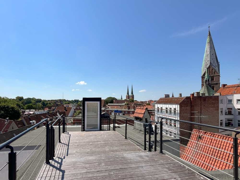 Diese besondere Wohnung befindet sich im Dachgeschoss eines stilvoll modernisierten Mehrfamilienhauses aus dem Jahr 1910 in zentraler Lage der Lübecker Altstadtinsel. Auf ca. 83 m² Wohnfläche vereint sie urbanes Wohnen, zeitgemäßen Komfort und charaktervollen Altbaucharme zu einem individuellen Wohnkonzept. Die Wohnung wurde im Jahr 2023 vollständig modernisiert und überzeugt durch ihren durchdachten, besonderen Grundriss und eine lichtdurchflutete Gestaltung. Herzstück ist das Wohn- und Esszimmer mit offener Küchenzeile, das ein modernes, kommunikatives Wohnen ermöglicht. Von hier führt eine Treppe zum Dachausstieg, von dem sich ein einzigartiger Blick über die Dächer Lübecks bis hin zu den charakteristischen Kirchtürmen der Altstadt eröffnet. Das großzügig geschnittene Schlafzimmer ist ein besonderes Merkmal der Wohnung und verfügt über einen direkten Zugang zu einem separaten Ankleidezimmer. Dieses kann klassisch als Ankleide genutzt werden, bietet sich darüber hinaus jedoch auch als Gäste- oder Arbeitsbereich an und schafft damit zusätzliche Flexibilität im Wohnkonzept. Sichtbare Holzbalken und weiße Holztüren unterstreichen den klassischen Altbaucharakter und bilden einen schönen Kontrast zu den verputzten Wänden und der klaren, modernen Gestaltung. Das Duschbad ist mit einem Fenster, modernen Fliesen, einem Handtuchtrockner sowie einem Waschmaschinenanschluss ausgestattet und bietet Tageslicht sowie zeitgemäßen Komfort. Zahlreiche Dachflächenfenster sorgen in der gesamten Wohnung für viel Helligkeit und eine angenehme Wohnatmosphäre. Ein praktischer Abstellraum neben der Küche sowie ein eigener Kellerraum ergänzen die Wohnung sinnvoll. Die Wohnung eignet sich ideal für eine Einzelperson oder ein Paar, insbesondere für junge Berufstätige oder Studierende und ist zugleich eine interessante Kapitalanlage in gefragter Innenstadtlage. Die Kombination aus urbanen Design, besonderem Grundriss und zentraler Lage macht diese Wohnung zu einer seltenen Gelegenheit auf dem Lübecker Wohnungsmarkt.