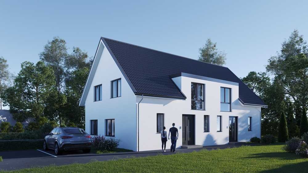 Willkommen in Bremerhaven-Wulsdorf - in der Gisselstraße entsteht ein modernes Doppelhaus im energieeffizienten KfW-40-Standard.