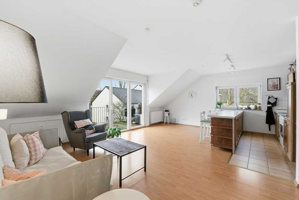 Die Wohnung liegt im Dachgeschoss, wodurch sich vereinzelt Dachschrägen ergeben. Diese schränken die Nutzung jedoch keineswegs ein, sondern verleihen der Wohnung vielmehr einen besonderen Charme.