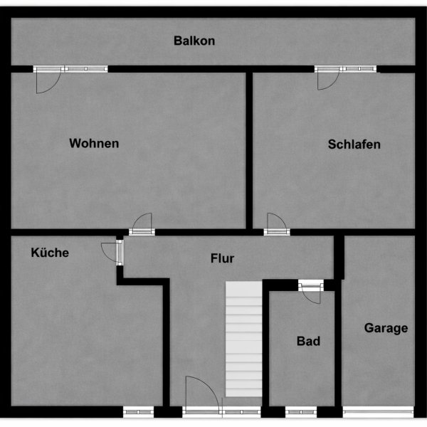 Der Grundriss im Erdgeschoss überzeugt durch eine klare Aufteilung mit einem großzügigen Wohnbereich und direktem Zugang zum Balkon, separater Küche, Schlafzimmer sowie einem Badezimmer. Große Fenster sorgen für helle und freundliche Räume.