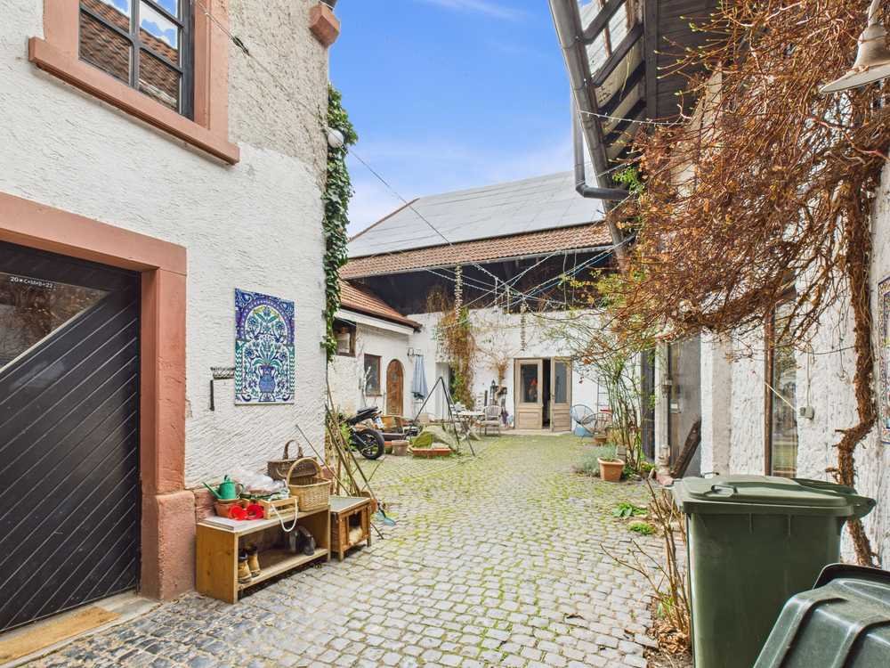 Eine wirklich besondere Immobilie mit Charme und Fläche ist eine absolut zutreffende Beschreibung dieses in Reinheim Ortsteil Georgenhausen zentral gelegenen Anwesens. Dieses seltene Immobilienangebot besteht aus dem bereits umfangreich modernisierten straßenseitig angeordneten Wohnhaus, zwei seitlichen Nebengebäuden mit zwei weiteren kleineren Wohneinheiten und einer sehr großen Scheune mit zwei Ebenen im rückwärtigen Bereich des Gebäudeensembles. Die reine Wohnfläche beträgt üppige ca. 255 m². Aufgrund dieser Gebäudeanordnung verfügt diese Immobilie über einen besonders charmanten und lauschigen Innenhof, gewissermaßen als Herzstück dieses Ensembles. Ferner gibt es noch eine kleinere grüne Freifläche hinter dem Scheunengebäude, welches z.B. als kleiner Bauerngarten genutzt werden kann. Das wie bereits erwähnt in den letzten Jahren liebevoll renovierte Hauptgebäude ist ein ideales Wohnhaus auch für die große Familie. Weitere in den Seitengebäuden befindliche Einheiten bieten Raumreserven zur Eigennutzung oder zum Vermieten. Neben dem immer beliebteren Mehrgenerationenwohnen bietet sich auch sehr gut eine Nutzung von Wohnen und Arbeiten an. Neben einigen Funktionsräumen in den seitlichen Gebäudeteilen und der kompletten Unterkellerung des Wohnhauses, ist die äußerst große Scheune ein echtes Highlight. Momentan eher als Lagerfläche genutzt ergeben sich aufgrund der Größe und Beschaffenheit vielfältigste Verwendungsmöglichkeiten für dieses Bauwerk. Der Phantasie sind hier kaum Grenzen gesetzt. Neben den bereits durchgeführten Modernisierungsarbeiten besteht noch genügend Freiraum für eine Weiterentwicklung dieser besonderen Immobilie.