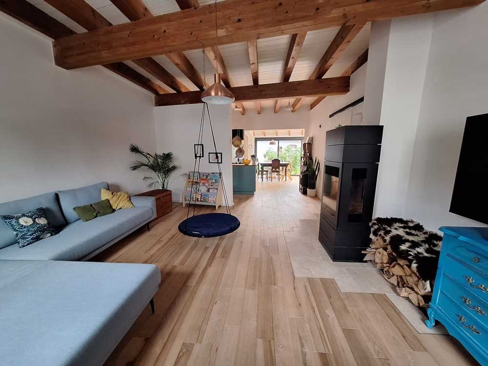 2023 Kernsanierung der Wohn-Ess-Küche sowie des Badezimmers im EG: Einbau einer neuen exklusiven Küche, Neuverlegung der Fußbodenheizungsrohre inkl. neuer Temperaturregler, neuer Estrich, Esche-Vollholzdielen & Travertin-Fliesen, Elektrik erneuert, Wände neu verputzt & gestrichen mit Silikatfarbe, Bad komplett saniert inkl. Fußbodenaufbau