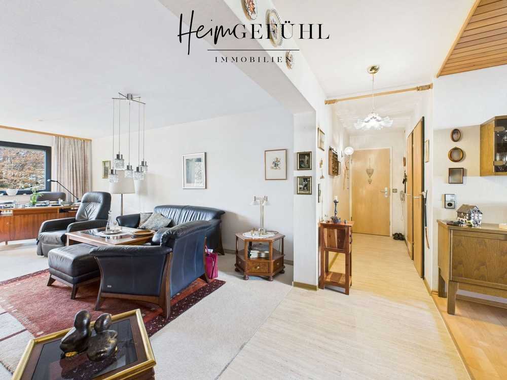 Der klar strukturierte Grundriss trennt Wohn- und Schlafbereich sinnvoll voneinander. Vom zentralen Dielenbereich aus sind alle Räume bequem erreichbar. Das großzügige Wohnzimmer bildet den Mittelpunkt der Wohnung und bietet Platz für Wohnen und Essen. Der Essbereich wird durch eine kleine Empore optisch hervorgehoben und verleiht dem Raum eine besondere Note. Große Fenster sorgen für eine helle, freundliche Atmosphäre.