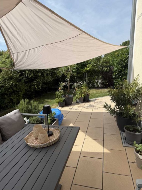 Ein besonderes Highlight ist die großzügige Terrasse mit Süd-West-Ausrichtung, die viele Sonnenstunden ermöglicht. Elektrische Rollläden, Fußbodenheizung sowie hochwertige Materialien wie Villeroy & Boch Fliesen und Eichenparkett runden die Ausstattung ab.