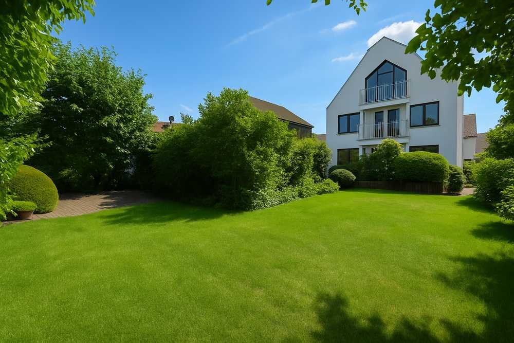 Der liebevoll angelegte Garten mit Bewässerungsanlage und gemütlichem Freisitz schafft eine angenehme Wohlfühlatmosphäre im Freien. Für Ihre Fahrzeuge steht eine großzügige Doppelgarage mit zwei Toren zur Verfügung, die innen miteinander verbunden ist. Zusätzlich gibt es einen Carportstellplatz sowie einen dekorativen Steingarten auf dem Garagendach.