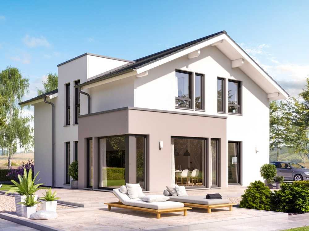 Das I-KON - Intelligentes Bauen-Konzept sorgt dafür, dass dein neues Zuhause energieeffizient und umweltfreundlich ist. Mit einem I-KON Effizienzhaus 55 benötigst du nur 55 % der Energie eines Standardhauses, dank innovativer Dämmung und moderner Heiztechnik. Zudem hast du die Möglichkeit, dein Traumhaus mit dem Zuhause-Darlehen zu finanzieren, das dir bis zu 250.000 EUR zu besonders günstigen Konditionen bietet. Im Zuhause-Paket erhältst du eine hochwertige Grundausstattung mit modernen Böden, edlen Türen und stilvollen Sanitäranlagen - alles optimal aufeinander abgestimmt und fix & fertig geliefert.