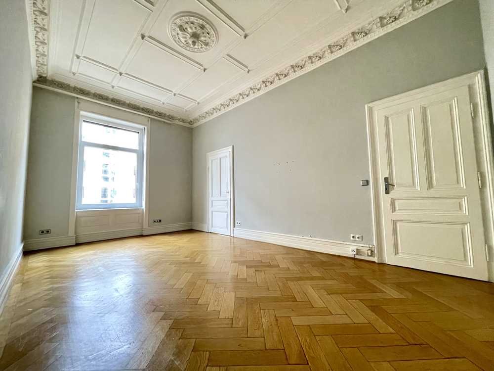 Die Wohnräume verbinden historische Eleganz mit modernisiertem Wohnkomfort. Großzügige Raumproportionen, beeindruckender Original-Deckenstuck und perfekt erhaltene Altbau-Details schaffen ein repräsentatives Wohnambiente von zeitloser Qualität.