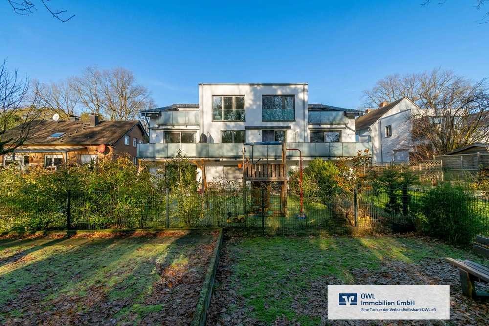 Diese außergewöhnliche Penthousewohnung aus dem Baujahr 2020 vereint modernes Design, hochwertige Ausstattung und eine ruhige, grüne Wohnlage in Schloss Neuhaus-Mastbruch auf ideale Weise. In einem gepflegten Sieben-Familien-Haus mit Aufzug gelegen, bietet diese Immobilie ein exklusives Wohngefühl mit hohem Komfort und viel Privatsphäre. Fußläufig erreichen Sie in wenigen Minuten den schönen Tallesee.