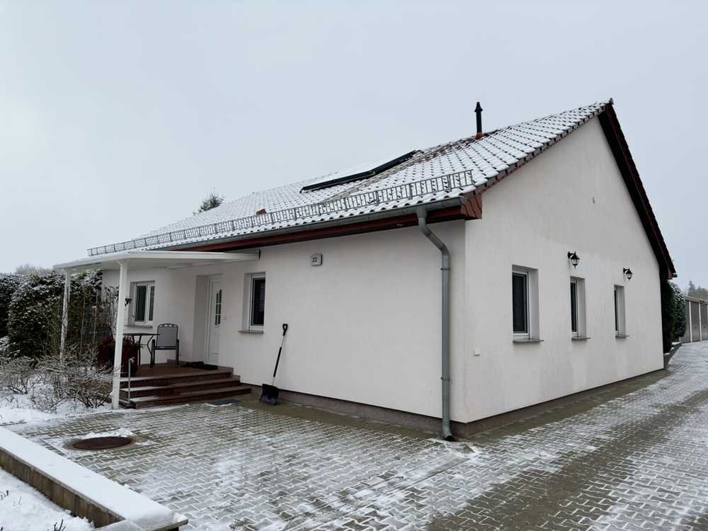 Der Bungalow verfügt über vier helle Zimmer, darunter drei gut geschnittene Schlafzimmer, die vielfältige Nutzungsmöglichkeiten eröffnen. Der freundliche Wohnbereich bildet das Herzstück des Hauses und schafft eine einladende Atmosphäre. Die vorhandene Einbauküche ist praktisch ausgestattet und fügt sich harmonisch in das Gesamtbild ein. Ein Tageslichtbad mit Badewanne sowie ein separates Gäste-WC sorgen für zusätzlichen Komfort. In allen Wohnräumen gewährleistet eine Fußbodenheizung ein angenehmes Wohnklima.