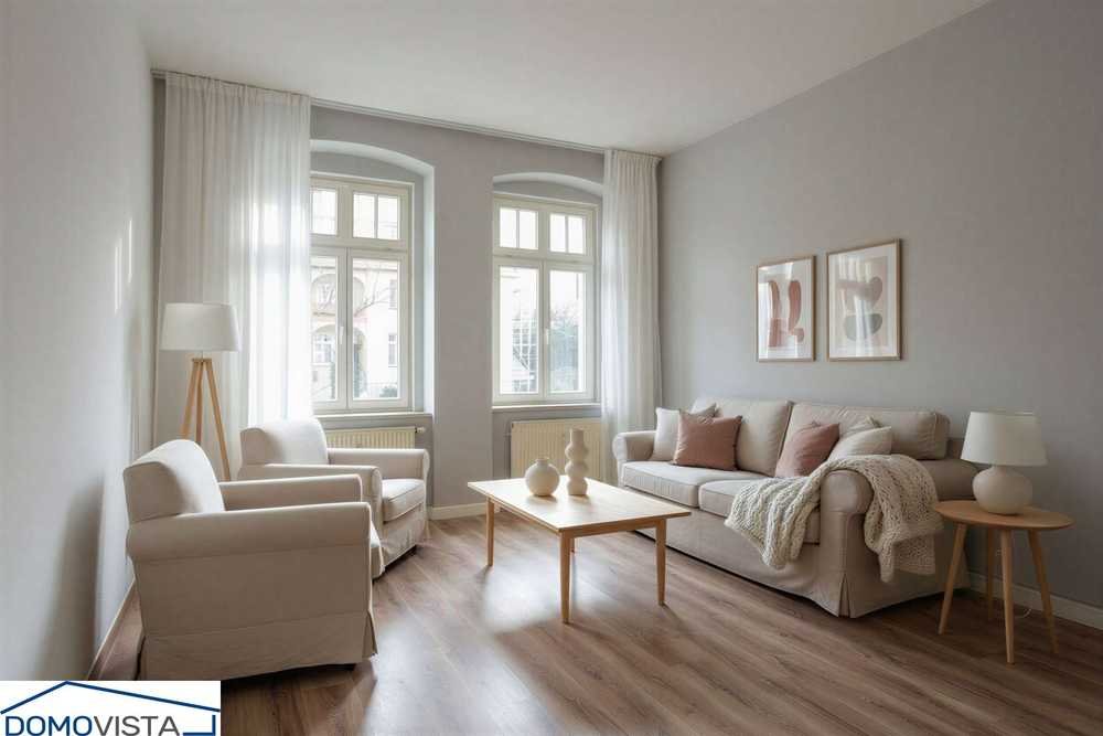 Diese 2-Zimmer-Wohnung im Hochparterre liegt in zentraler Lage von Görlitz und verfügt über eine Wohnfläche von 53,78 m². Das Gebäude steht unter Denkmalschutz.