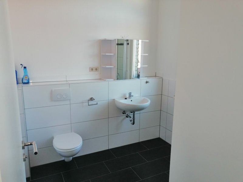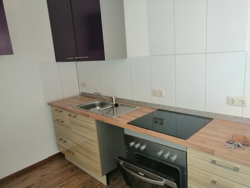 Neu renovierte 2 Raumwohnung mit Wohn - Essküche, Bad mit Regendusche, Waschtisch, Vorwand WC und Handtuchheizkörper.