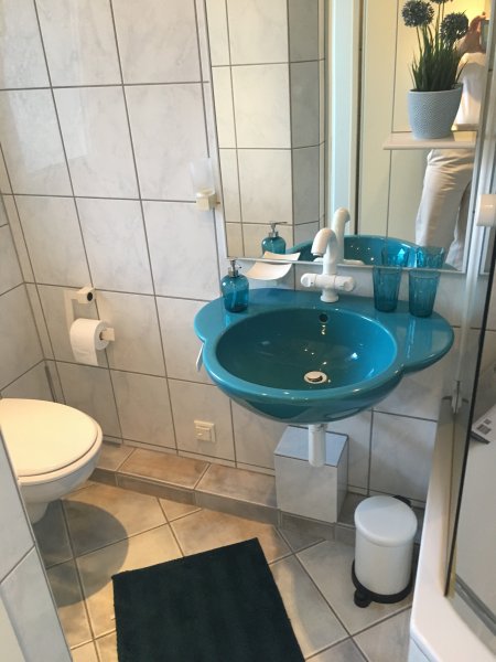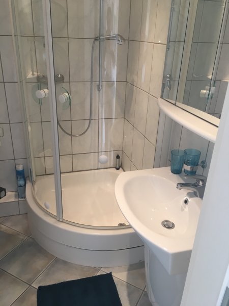 In den beiden modern gefliesten Bädern befindest sich eine Wanne mit Duschfunktion bzw. eine Dusche.