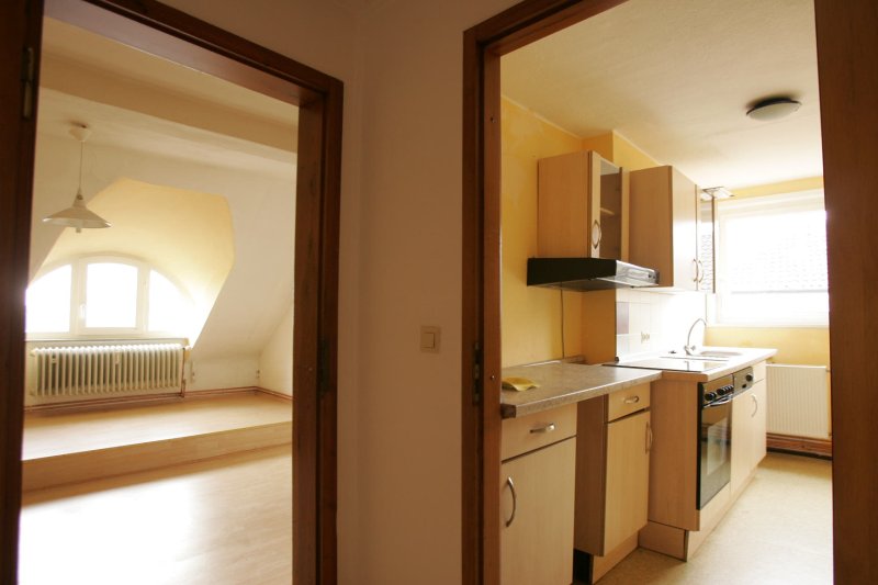 Die sonnige ca. 65m² große 3-Zimmer Dachwohnung befindet sich im 2. Obergeschoss eines gepflegten Altbaus das einst Anfang des 20. Jahrhundert Hotel war.
