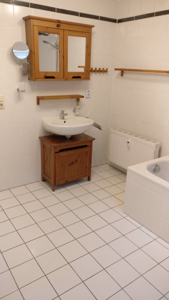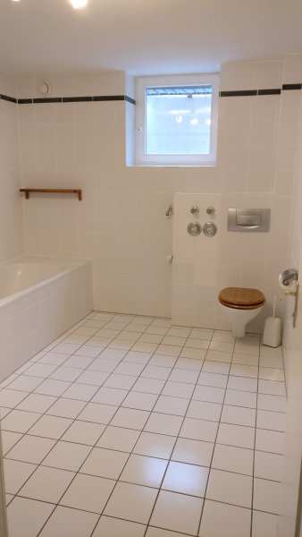 Ebenfalls auf dieser Ebene befindet sich das große, helle Badezimmer mit Fenster. Das Bad ist mit einer großen Badewanne ausgestattet die man auch als Dusche nutzen kann. Es ist genug Platz für die Waschmaschine (Anschlüsse vorhanden).