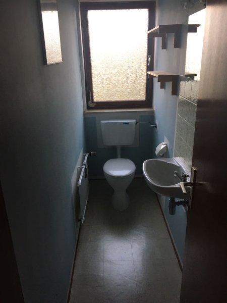 Die Toilette ist getrennt vom Badezimmer und hat ebenfalls ein Fenster sowie extra Waschbecken.
