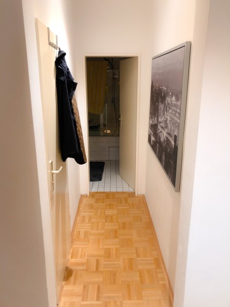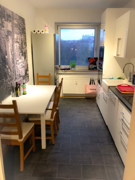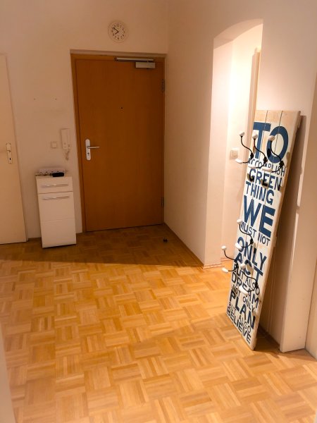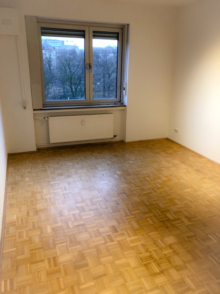 Die Wohnung liegt im 3. Stock mit Aufzug. Insgesamt hat sie ca. 90 m² bestehend aus 3 Zimmern. Das Wc und das Bad sind in separaten Räumen (Siehe Grundriss). Ich selbst bin Hauptmieter und wohne auch in der Wohnung, alle zwei Wochen habe ich meine Tochter (5 Jahre) bei mir, welche aber die Zeit in meinem Zimmer verbringt (wenn daheim). Das Zimmer ist derzeit nicht möbliert. Wenn man aus dem Fenster schaut sieht man die Isar. Die Lage ist sehr cool, da sie mitten in der Stadt ist und auch extrem gut zum laufen an der Isar einlädt. Im Sommer kann man fußläufig zum Praterstrand gehen und baden. Im Grundriss ist es das Zimmer Nummer 2.
