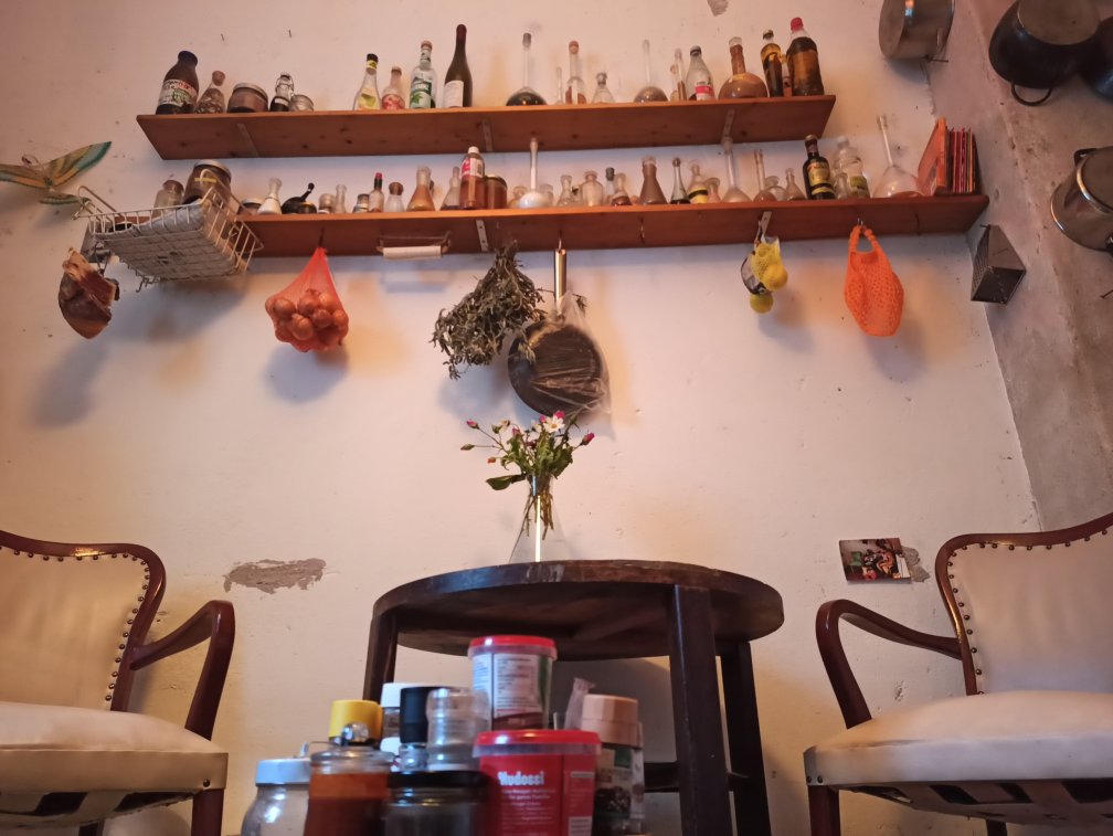 - Wohnzimmer mit 2 Couchs (eine davon herunterklappbar), ausziehbarer Tisch, Beamer, Büchersammlung (hauptsächlich Kunstbände)