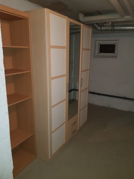 Kleiderschrank und ein Regal, welche ebenfalls den Mieter