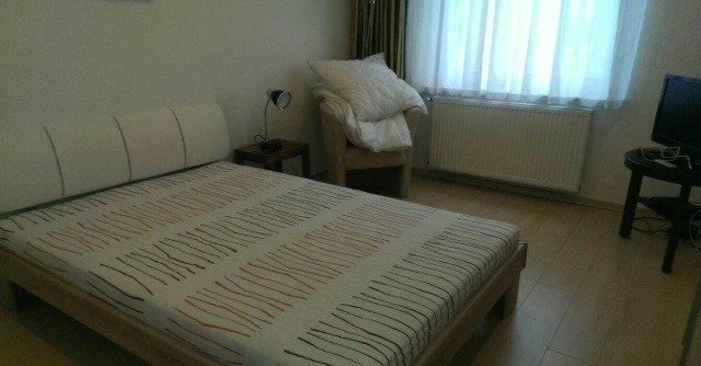 Der Schlafraum bietet Platz für einen Kleiderschrank und ein bequemes französchises bett Bett ( Queensize )