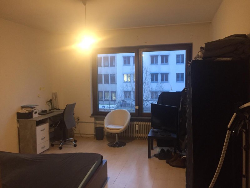Das Zimmer ist 20 qm und Eingerichtet mit Bett Schrank und Schreibtisch.