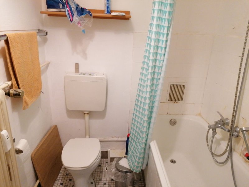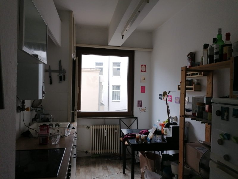 Die WG ist 79 qm mit Küche, Badezimmer und Waschmaschine