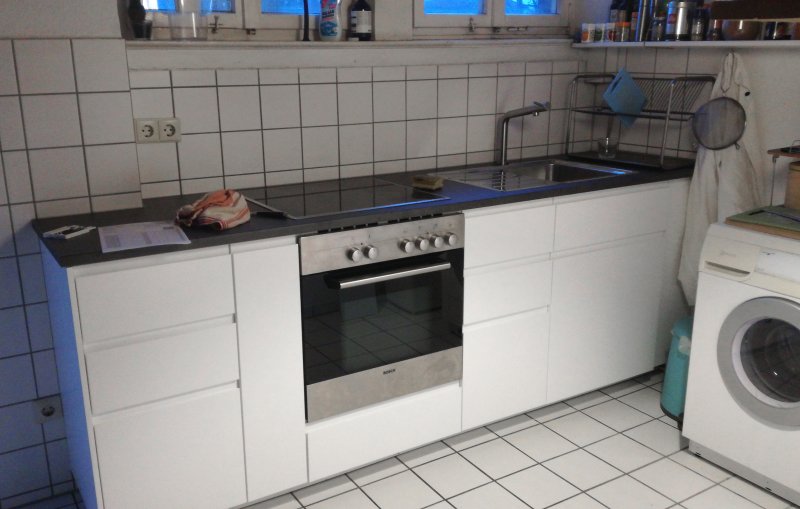 Am anderen Ende der Wohnung gibt es eine kleine Wohnküche zur gemeinsamen Nutzung.