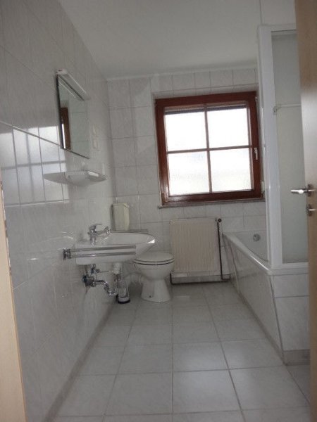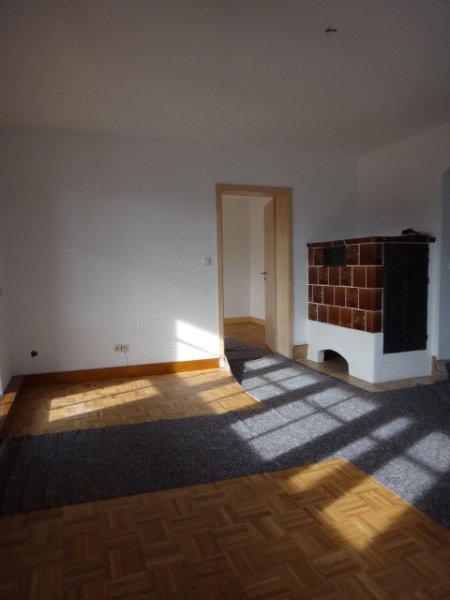 In drei Wohnräumen befindet sich Fichtenriemenboden (Küche sowie beide Kinderzimmer), Wohnzimmer mit Kachelofen und Parkett, Schlafzimmer mit Parkett, weiß gefliestes Badezimmer mit Badewanne, in der Wohnküche befindet sich eine Einbauküche, diese kann vom Vormieter abgelöst werden, Waschmaschinenanschluss im Keller vorhanden