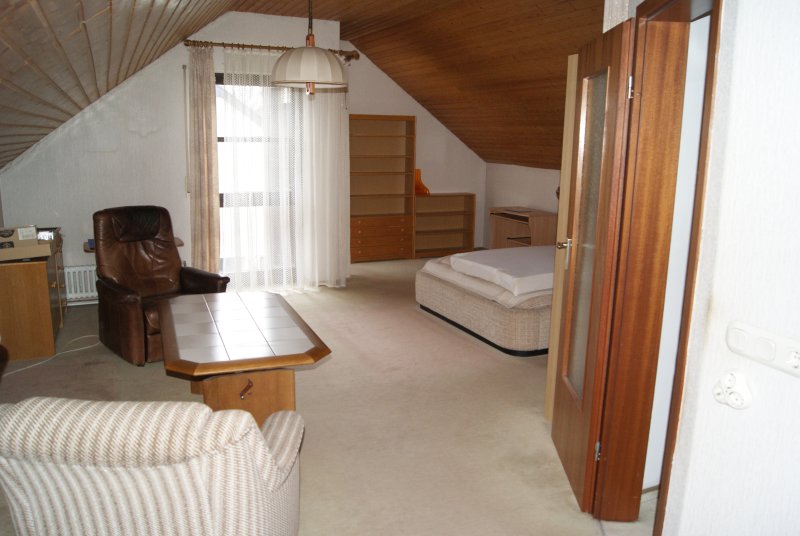Im 1.Stock ein Schlafzimmer ausgestattet mit gr. Doppelbett, Kommode, Einbauschrank und Schreibtisch, von dem man auf den Balkon mit Südblick gelangt sowie Gästezimmer mit Couch sowie Arbeitszimmer mit Kommode, Aktenschrank, Schreibtisch und Sessel, Badezimmer mit Badewanne, Dusche, WC und 2 Waschbecken.
