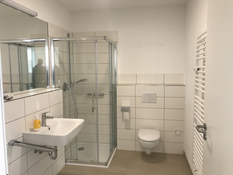 - ein top modernes Bad mit Dusche, Waschmaschinenanschluss und Handtuchhalterheizung,
