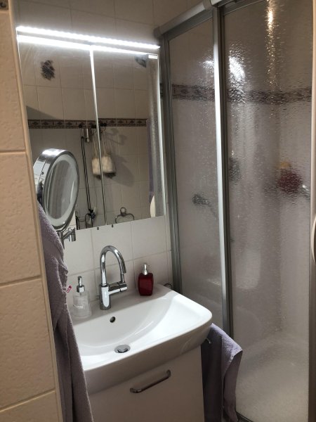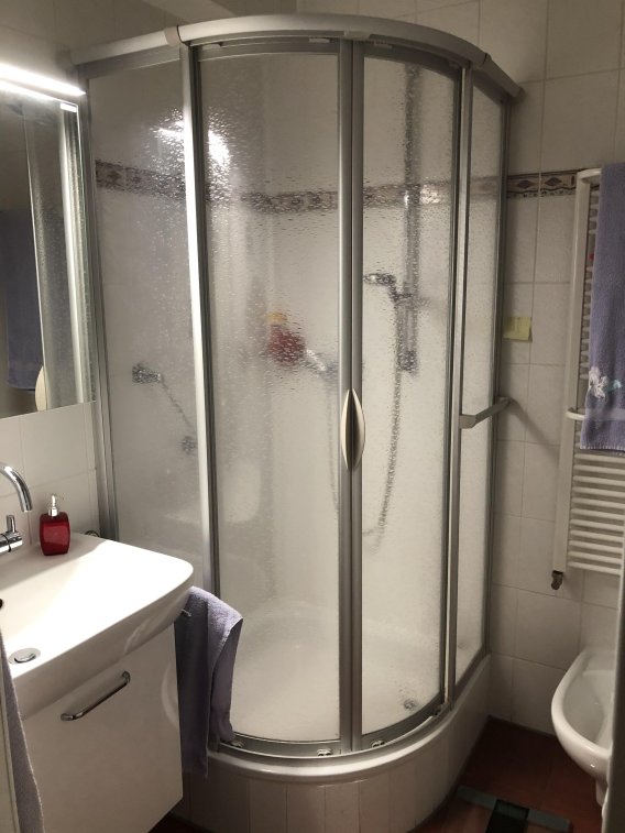 Alle Räume sind gut geschnitten. Das Bad mit Dusche verfügt zusätzlich über ein Bidet und ein modernes Waschbeck mit Unterschrank und Spiegel.
