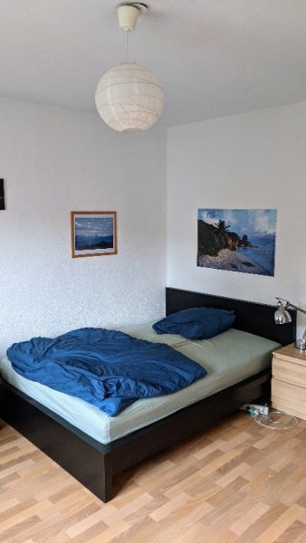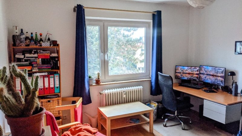 Die Abmessung des Zimmers liegt bei ~4m x ~4,25m (vom Fenster zur gegenüberliegenden Wand). Also um die 17 m². Bei Anfrage können einige Möbel übernommen werden.
