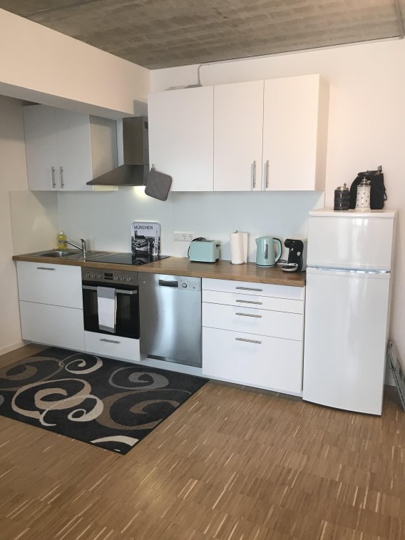 - Küchenzeile mit Herd und Backofen, Spülmaschine und Kühl/Gefrierkombination (Mikrowelle,Toaster,Wasserkocher,Kaffeemaschine etc.)