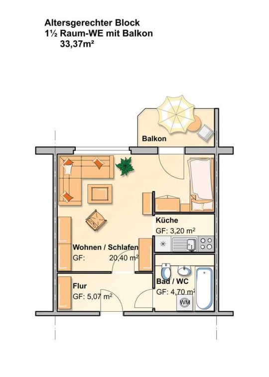 Die Wohnungen haben ein innen liegendes Bad mit Dusche. Jede Wohnung verfügt über einen schönen Balkon und ein großzügiges Wohnzimmer mit Schlafnische. Der Flur bietet eine ideale Abstellfläche für z.B. einen Kleiderschrank.