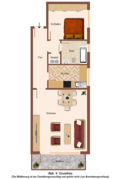 Die Wohnung hat einen Südbalkon mit Markise, der eine sonnige Atmosphäre schafft. Im Schlafzimmer befindet sich ein Einbauschrank, der durch viel Stauraum und Ablagemöglichkeiten überzeugt. Ein nützlicher Abstellraum im Flur mit integriertem Waschmaschinenanschluss rundet das Raumangebot ab.