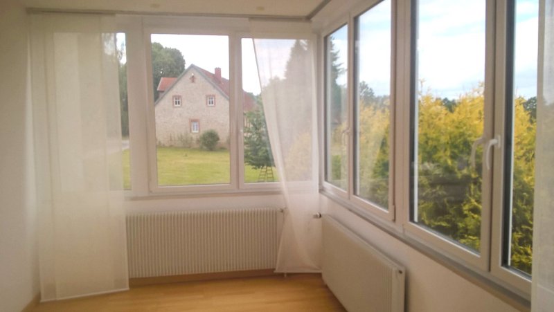 Das Zimmer (19m²) + eigenem Wintergarten (16m², Rundumblick + neue Isolierfenster).