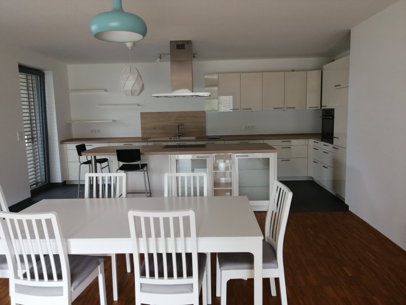 möbliert, Fußbodenheizung, KFW 70 Haus, Solaranlage, Bodentiefe hochwertige Holz-Fenster mit 3-fach Verglasung im allen Wohnbereich, alle Fenster haben elektrische Außenrollläden oder Raffstoren, sehr hochwertige Einbauküche mit Elektrogeräten, Lautsprecherverkabelung, Tiefgaragenstellplatz.