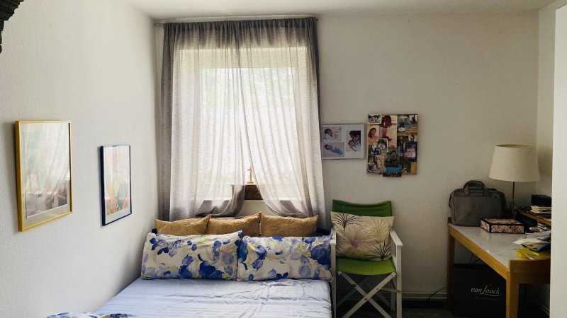 The location of the flat is very quite and the there is an Innenhof planted with trees and grass . The balcony faces Southwest where sunset can be seen. You can message me at 01777805289 for further questions.