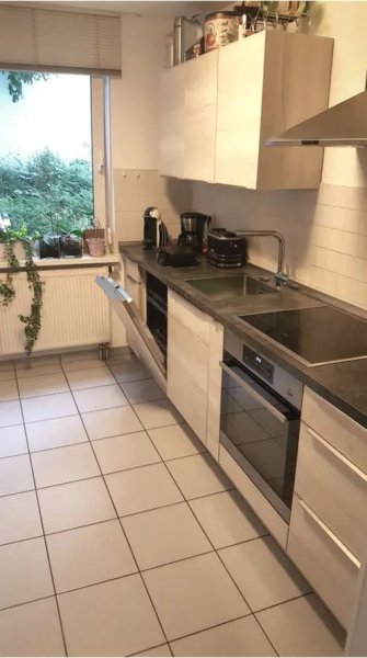 Die Küche und das Bad sind gefliest und im Flur, Schlafzimmer und Wohnzimmer ist ein Laminatboden vorhanden.