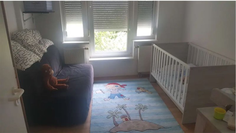 Die Wohnung besteht aus: Flur, Küche, Bad, Kinderzimmer, Wohnzimmer mit Zugang auf den Balkon und Schlafzimmer