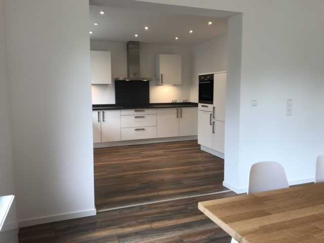 Es sind 7 Zimmer vorhanden, ein Gäste-WC, ein Heizungsraum und zwei Badezimmer. Alle Badezimmer, Fußbodenbeläge, Heizkörper, Lampen, Schalter etc. sind neu. Das Wohnzimmer ist mit der Küche durch eine L-Form direkt verbunden und die Spüle ist vor dem großen Küchenfenster. Bei der Küche handelt es sich um eine hochwertige Einbauküche mit Granitarbeitsplatte und großem Induktionsfeld.