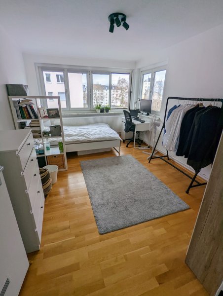 Das helle WG-Zimmer bietet durch eine breite Fensterfront direkten Blick auf den Merianplatz und ist vollmöbliert (Bett, Schreibtisch, Regal, Kleiderschrank, Kommode) und soll so übernommen werden. Auch die restliche Wohnung ist bereits top ausgestattet (z.B. komplett eingerichtetes Wohnzimmer mit Couch, Esstisch, etc.; Küche inkl. Geschirrspüler und allen weiteren wichtigen Utensilien, sowie Vorhandensein einer Waschmaschine), was einen reibungslosen und einfachen Einzug ermöglicht.