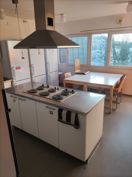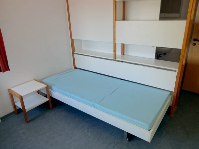 Es ist ein Einzelzimmer in Campus Stuttgart Vaihingen. Die Küche,Duschen und Toiletten sind an jedem Stock , geteilt von 8-9 anderen Studenten.