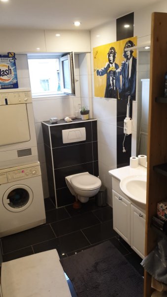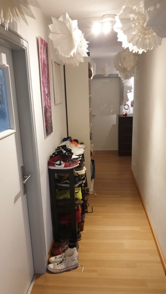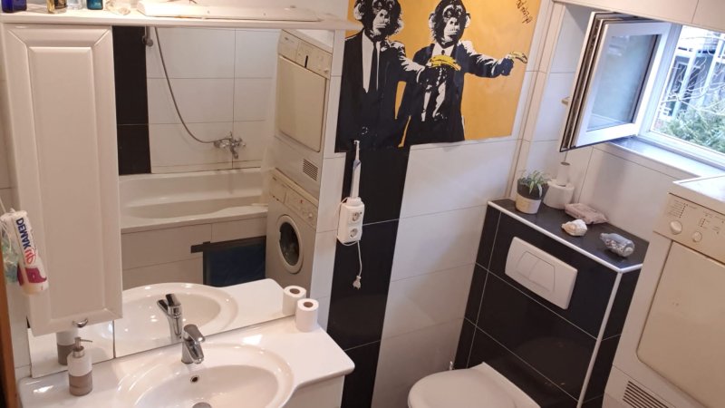 Insgesamt sind es 5 Zimmer in der Wohnung. Wir haben eine große Küche und ein schönes Bad. Das fünfte Zimmer wird an einen vierten Mitbewohner vermietet.