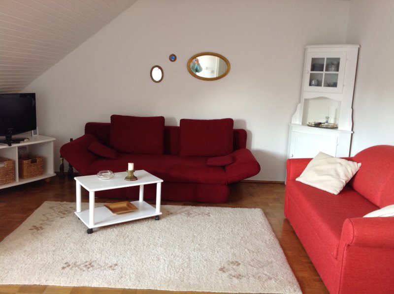 - helle, gemütliche Dachgeschosswohnung mit Parkettboden, großes Wohnzimmer mit Essbereich, Schlafzimmer mit Boxspringbett, ausgestattete Küche mit Waschmaschine