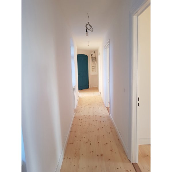 Die Böden bestehen aus Echtholzdielen, die Wände sind mit Silikatputz