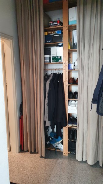 Es besteht zudem die Möglichkeit, noch weitere Möbel zu übernehmen (Regale und in der Diele und Vorhänge)